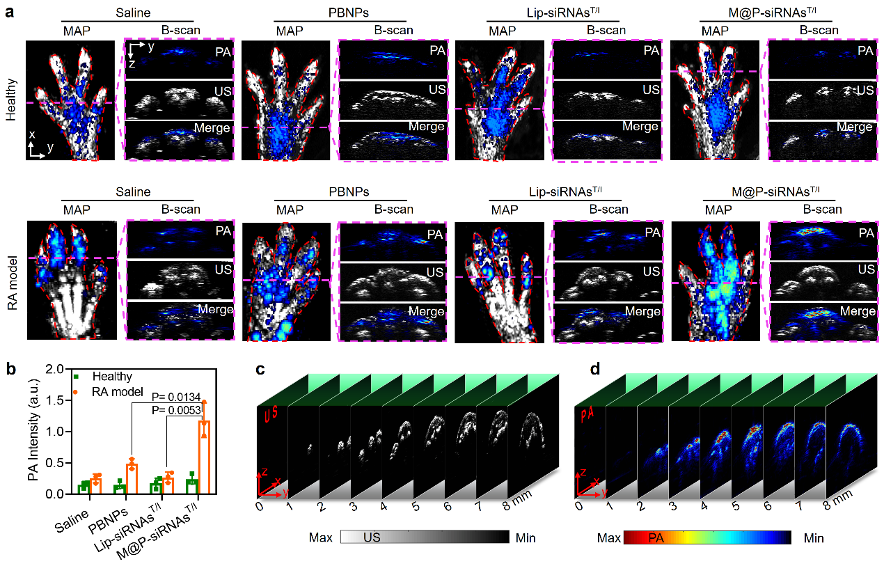 图4. 类风湿关节炎体内靶向光声成像研究