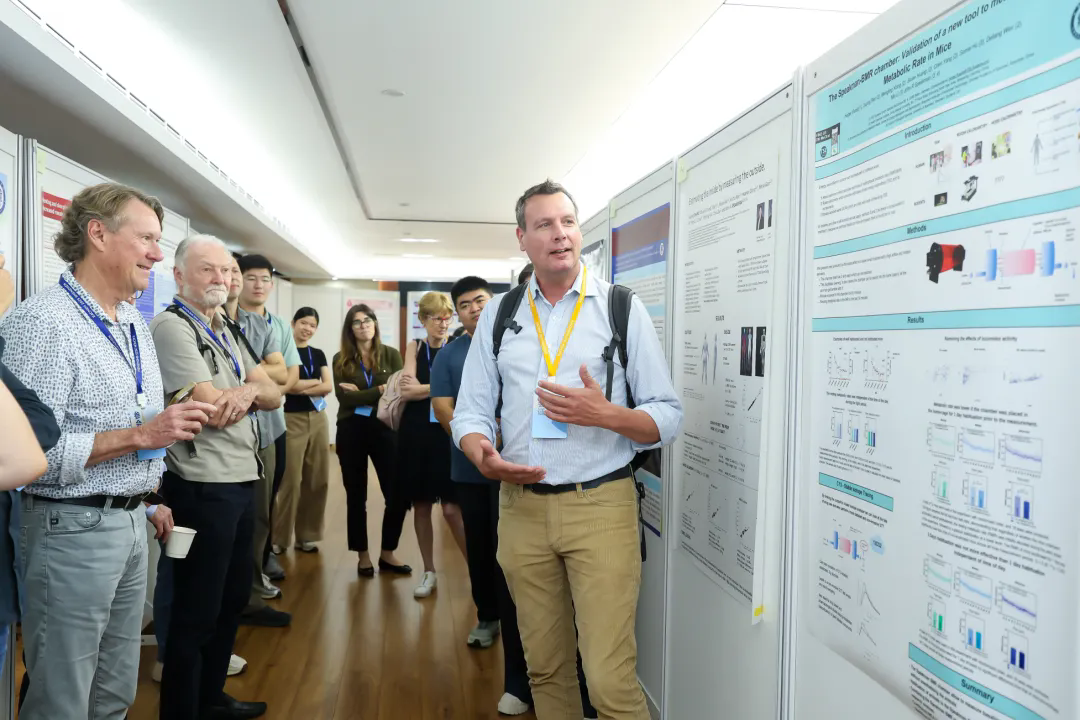 会议为期五天,设置了主题报告、专题研讨会、学术争鸣、实验室参观、海报快闪等多种形式的研讨环节。会议以跨学科、重方法、促合作为宗旨,聚焦“中国的能量消耗与代谢研究”“温度与代谢”“蛋白质的影响”“代谢测量方法”“能量调控”等前沿议题展开深入研讨与探讨。此外,会议还特设了多个海报快闪环节,涵盖静息代谢率、身体成分、微生物组、代谢疾病等广泛主题,为青年学者给予了展示平台和研讨机会。会议期间,与会学者还与知名制药企业代表进行了深入研讨,并达成多项合作意向。